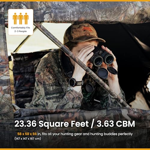 [Spacious & Convenient] Accommodates 2-3 people comfortably in a 4.8×4.8 ft space that makes 23.36 sqft and 3.63 CBM, ideal for group hunting or solo adventures.