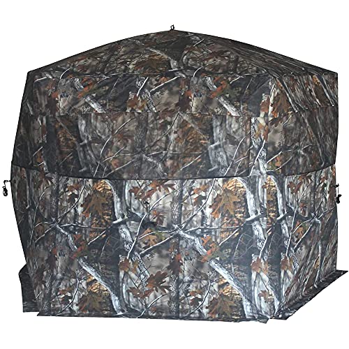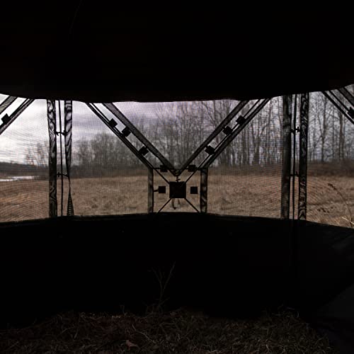 The Hi-Five Hub Blind from Barronett Blinds, features 1-way viewing offering 360⁰ vision in an extra tall 5-sided blind. The 1-way fabric provides an undistorted view from the inside, while the exterior appears completely solid to keep you shielded from your prey. The Hi-Five windows feature quiet toggle and loop attachments for noise free adjustment. The Hi-Five is the largest blind of its kind. Its pentagon shape creates 70% more space than a comparable 4-sided blind, giving you plenty of room to hunt with a group or to store more gear. The Hi-Five also feature taller side walls that create 76” of head room. The Hi-Five is reinforced with an OxHide 2-layer fabric roof and reinforced in the corners. The framework is constructed from extra-large heavy-duty fiberglass poles and rugged aluminum hubs for maximum durability.