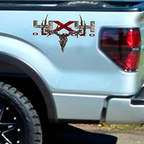 Twisted Timber Camouflage 4×4 Hunting Skull Truck Decals. Great replacement idea for those boring factory stickers. These will not harm your surface and are made for the outdoors. These go great with both Realtree and Mossy Oak Camo accents on any truck.
