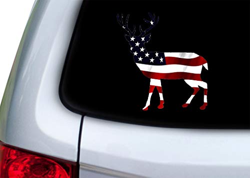 Deer Hunter Buck Decal Sticker Silhouette American Flag USA Large 5×5 Inch Patriotic Decal Auto Bumper Sticker Vinyl Car Truck RV SUV Boat Window Hunting