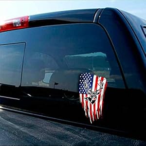 Old Glory American Deer Hunting Distressed Flag Vinyl Decal. All of our decals are laminated and printed on professional grade air release vinyl, we are a small business so decals are printed to order and carefully checked before leaving our facility to ensure quality and accuracy.
