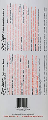 Call in those bruins with thick scented smoke! Check out our complete line of Bear Sense Smoking Sticks, all scents are extremely effective anytime during the bear hunting season. When choosing a scent consider what will work best in your area. Consider factors including the abundance of berries or lack of food or protein sources in your hunting area. -Like all of our products, Bear Sense is fully synthetic and not considered as bait -We strongly recommend using a bucket to regulate smoke, protect sticks from weather and prevent fires -Do not take sticks or packaging to your hunting stand -Bear Combo pack has a total of 12 sticks, 3 of each scent: Anise, Wild Berry, Dead Fish and Donut, and our collapsable bucket -Each stick burns for approximately 2 hours