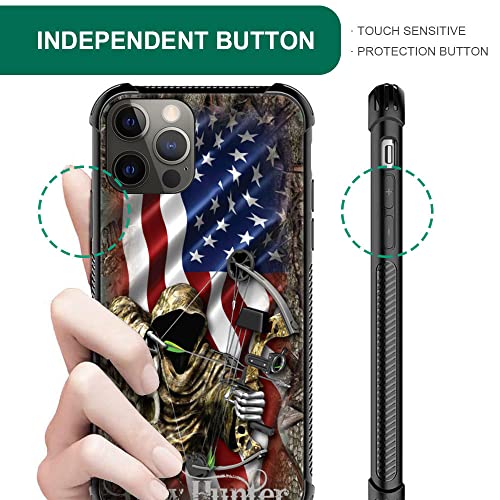 DJSOK Case Compatible with iPhone 12 Case, Bow Hunter American Flag Camo case for iPhone 12 Pro Cases for Men Women Fans,Anti Scratch and Shockproof Phone Protective case