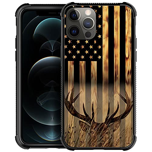 DJSOK Case Compatible with iPhone 12 Case, Wood Grain American Flag Buck Hunter Deer case for iPhone 12 Pro Cases for Men Women Fans,Anti Scratch and Shockproof Phone Protective case