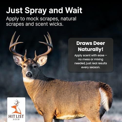 Fire up deer activity and bring bucks into range with Hit List Scrape Starter – Mock Scrape Deer Attractant. This premium whitetail deer scent is designed to mimic the natural smells that trigger curiosity, territorial behavior, and rutting instincts. Use it to start mock scrapes or refresh existing scrapes and keep bucks checking back regularly. The convenient 2 oz spray bottle makes it easy to apply on hemp ropes, soil, licking branches, or trails with no tools and no mess. Perfect for early season scouting, rut hunting, and trail camera setups, Hit List Scrape Starter increases daytime visits and helps hunters pattern mature bucks for a proven hunting advantage.