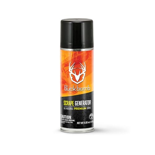 Hunters Specialties Buck Bomb Scrape Generator Scent – Aerosol The Buck Bomb Scrape Generator Bomb contains 6.65 ounces of pure, fresh urine from estrus does and rutting bucks. For best results, use during the pre-rut through the peak of the breeding period. Use Buck Bomb Scrape Generator while in your stand or blind, or when stalking deer to create a barrier of cover scent between you and the animal. The atomized scent is equally effective when used on scent trails, in mock scrapes, or when applied to a decoy to ramp up the enticement level. The convenience of Buck Bomb Scrape Generator simply means spray-and-go when you’re applying deer lure scent. Each can of Buck Bomb features the NVERTR 180-degree ball valve that allows it to be sprayed in short bursts – even upside down. Or, lock down the valve and empty the contents all at once to unleash a potent cloud of scent that can travel in excess of a quarter mile on a 3 mph breeze.