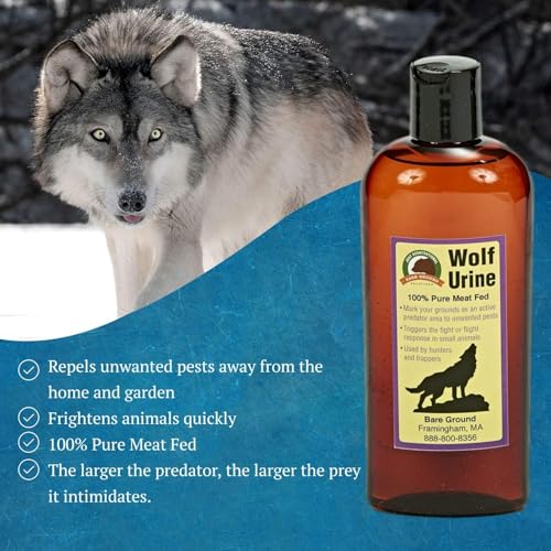 Just Scentsational Wolf Urine used widely by hunters, trappers and gardeners. Wolf urine is a great way to humanely trigger the “fight or flight” response in small nuisance animals. Quickly and effectively clear your yard and garden of unwanted rabbits, skunk, raccoons, squirrels, groundhogs, chipmunks and deer. Repeat the application every couple of weeks or after heavy rains. Apply 1/2oz on the ground every 10-12ft to create an illusion. Water soluble so re-apply after every rain or about every 10 days. Try to mark a different area each time you re-apply.