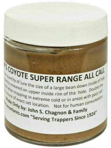 Same thick paste, multiple ingredient formula as Coyote #1 with more calling power. Pure skunk musk and another powerful musk are added to call in the coyote from long distance. This lure is recommended for inexperienced trappers who have not perfected set location…for anyone trapping in areas where good set visibility is lacking…and for more calling power in extremely cold weather. This is also an effective lure for Wolf, Badger, and Wolverine!