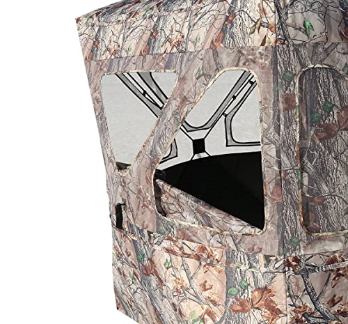 CONSTRUCTION – Black Backed, Water Resistant Heavy-Duty 600 Denier Fabric in Epic Camo for a natural looking environment. The heavy duty construction with help it last and the silent window system will allow for limited noise output