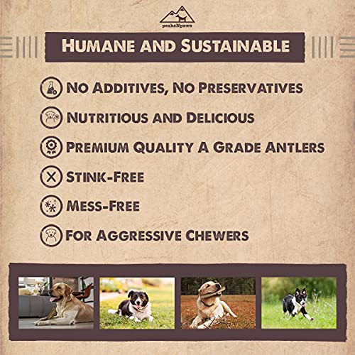 FOR AGGRESSIVE CHEWERS: peaksNpaws Naturally Shed Elk Antlers are recommended for aggressive chewers. Antlers are very hard and in some cases can damage teeth. Always supervise your dog while the product is being used. If an antler is worn or too small, please discard it as it might prevent a choking hazard. Antlers are for dog consumption only (not for human consumption).