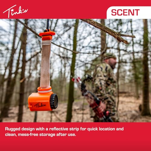 The Tink’s Scent Reel is a compact, retractable scent dispersal system designed to maximize the effectiveness of your favorite Tink’s lures with less mess. Built with a rugged design and leak-proof o-ring, it holds up to 1 ounce of lure. Simply unlock the reservoir cap, fill, and secure. Once at your hunting spot, pull the hanging loop to extend the 10-inch wick and hang it in place. When you’re done, just reel the wick back in for clean, easy storage. A reflective strip makes it easy to locate in low light, making this a smart, no-fuss addition to your gear