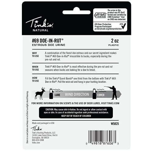 INCLUDES: Tink’s 2 Ounce #69 Doe-In-Rut Buck Lure Bottle & 1 Ounce Scent Bomb