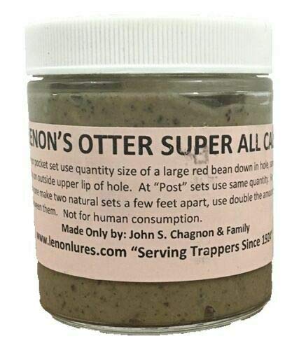 Torpedo – Food and Call Lure – Fox Hollow Otter, Raccoon, Mink, and Bobcat No other lure that Bob Young has ever tested attracted otter as good as this one. For otter this lure is the most effective when used at a double pocket set right next to an otter trail or crossover. Set your trap between the holes and put Torpedo in the back of one hole and place fresh fish, Crawdad Oil, Caven’s Mink and Coon Bait or Marsyada’s Shellfish Bait in the back of the other hole. This set will also take about every passing mink or ‘coon. Also, very effective on bobcats.